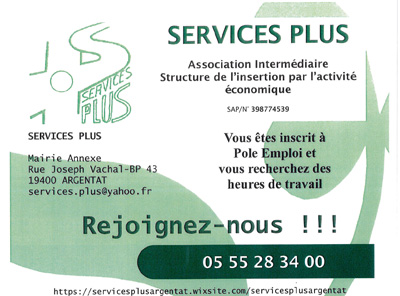 N’hésitez pas à nous contacter au 05.55.28.17.66 ou par mail : services.plus@yahoo.fr.