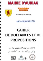 Le cahier de doléances et de propositions ouvert à la mairie d’AURIAC le 07/01/2019 et clôturé le 20/02/2019 a été transmis aux personnes suivantes :