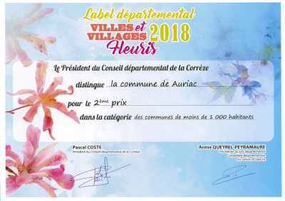 2ème prix obtenu dans la catégorie "moins de 1000 habitants" attribué à AURIAC