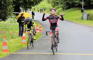 la course en compagnie de quatre autres coureurs. Malheureusement Erwin très en forme ne peut finir la course à cause d'une crevaison. (il avait pourtant mis des pneus neufs...) Dans le dernier tour, Eric avec Francis le champion départemental sortant de Troche, se disputent la victoire au sprint, Eric finit comme ses partenaires de club encore à la 2ème place...